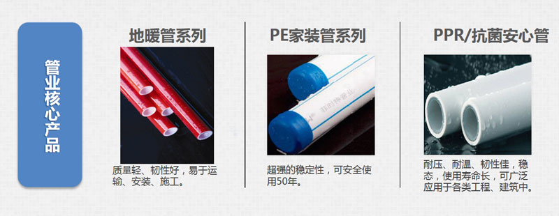 區(qū),惠及全球千萬家庭。產(chǎn)業(yè)鏈覆蓋管業(yè)、衛(wèi)浴、水暖、玻璃膠全系列產(chǎn)品。精準(zhǔn)的定位市場,完善的銷售渠道,